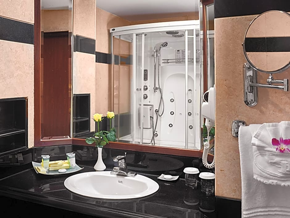 Featuring free toiletries and bathrobes, this suite includes a private bathroom with a bath, a shower and a hairdryer. The suite's kitchenette, which has kitchenware, is available for cooking and storing food. The spacious air-conditioned suite features a flat-screen TV with cable channels, a mini-bar, a tea and coffee maker, executive lounge access as well as pool views. The unit has 2 beds.